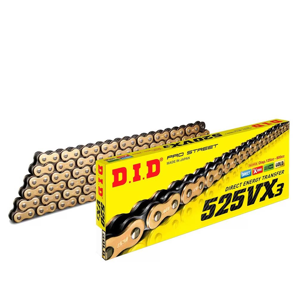 Эта цепь заменяет хит продаж прошлых лет - цепь DID 525 VX. По сравнению с 525VX новинка имеет на 8% большую прочность на разрыв и плюс 11% к сроку службы! Мы смогли сделать это благодаря улучшенной закалки внутренней пластины и изменению материала сальника. Все это позволило увеличить максимальный объем двигатея до 1000см3 для новой цепи. Цепи серии VX подходят для широкого круга мотоциклов городского и внедорожного типа. Цепи DID серии VX отличает высокое качество, низкое трение благодаря X-Ring сальникам, и выгодная экономичная цена. В цепях VX увеличена жесткость, минимизированы растяжения, поэтому движение мотоцикла получается плавным и уверенным.